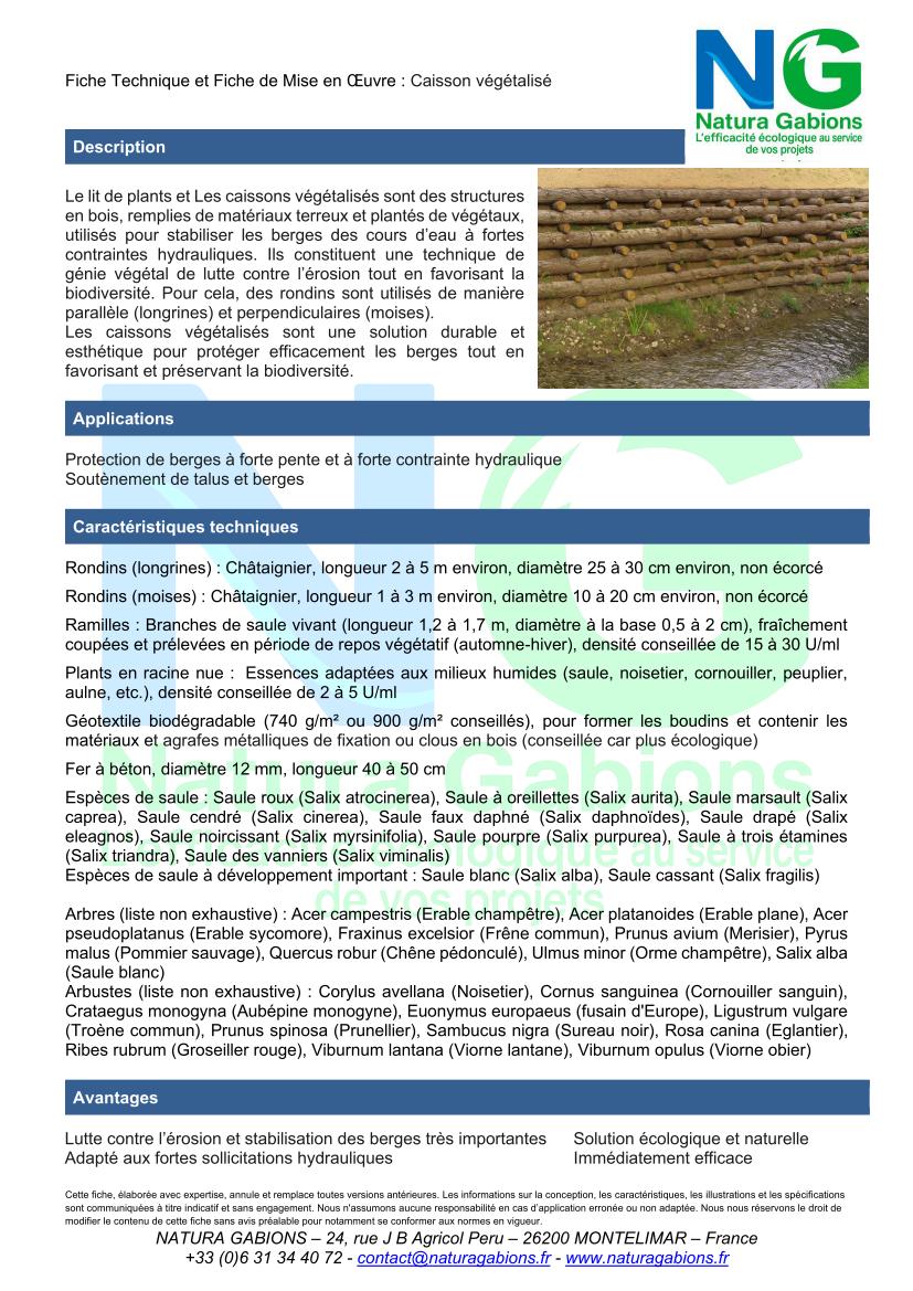 Le caisson végétalisé est une technique mixte alliant génie civil et génie végétal. Il s’agit de structures en bois (rondins en châtaignier appelés moises en longrines) remplies de terre et de branches de saule vivantes.